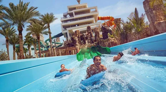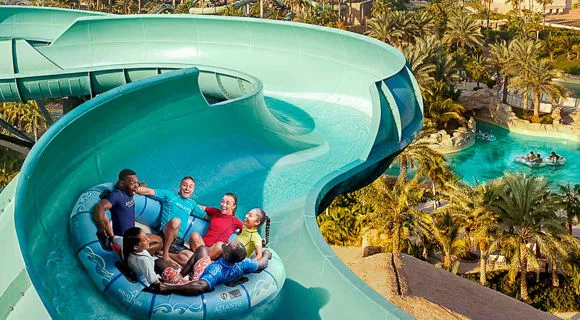 Discover the thrill of Atlantis Aquaventure Waterpark, Dubai’s premier waterpark located in the iconic Atlantis, The Palm Resort. Spanning over 22 hectares, it offers heart-pumping slides, adrenaline-filled rides, and 1km of private beach for relaxation. With over 105 attractions, Aquaventure is perfect for families, thrill-seekers, and marine life enthusiasts alike.