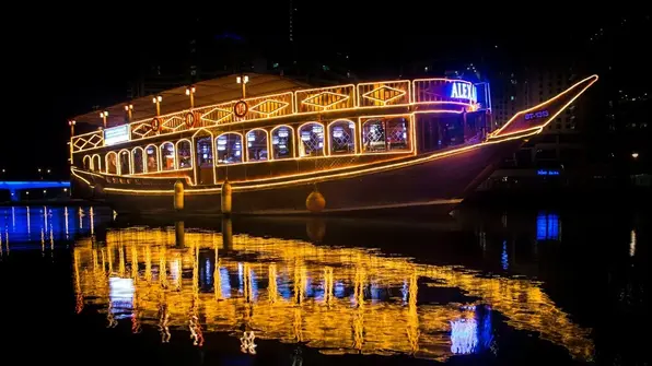 Sail gently down the serene waters of Dubai Creek on our traditional Arabian dhow. As you cruise, indulge in a lavish buffet dinner featuring a variety of vegetarian and non-vegetarian options, freshly prepared to satisfy every palate.